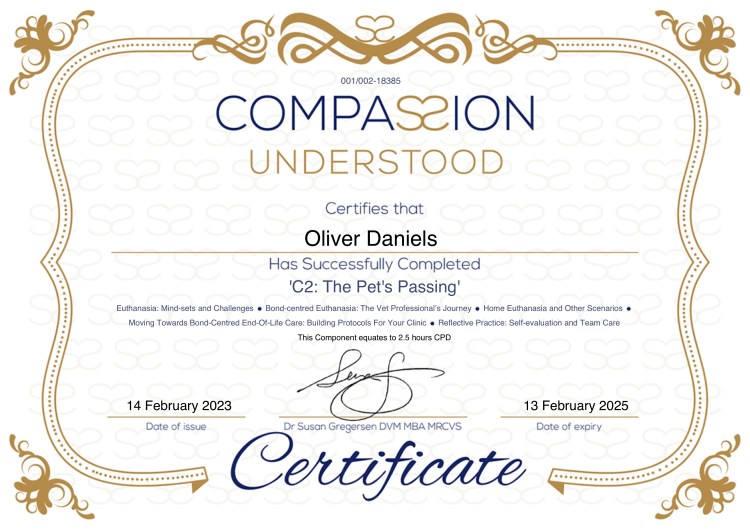 We would like to thank Oli so much for making a heart breaking moment so peaceful! To have our beautiful cat Olly put to sleep at home with his family around him was the best decision we could make!! Thank you once again Oli Jo and John R.